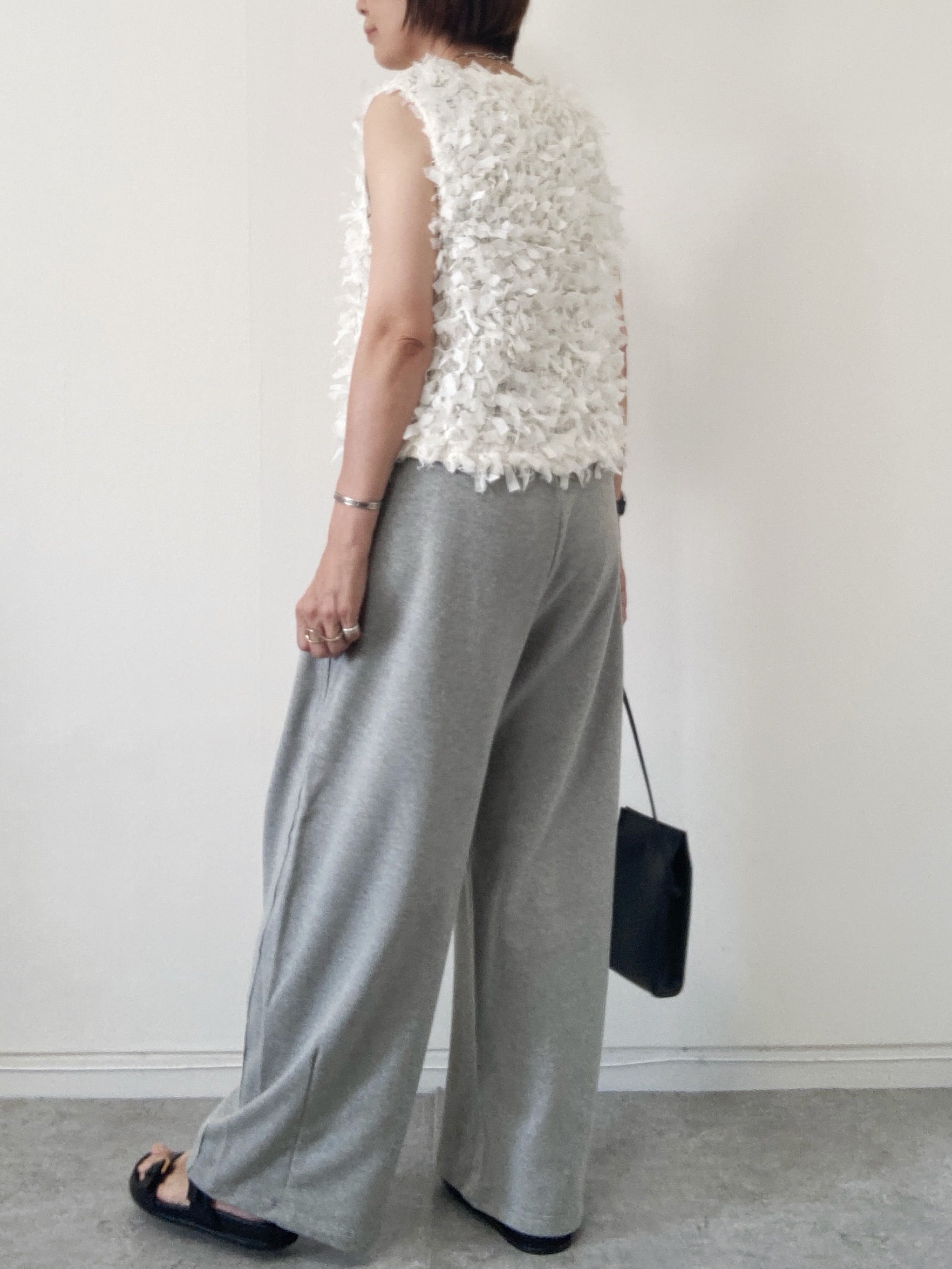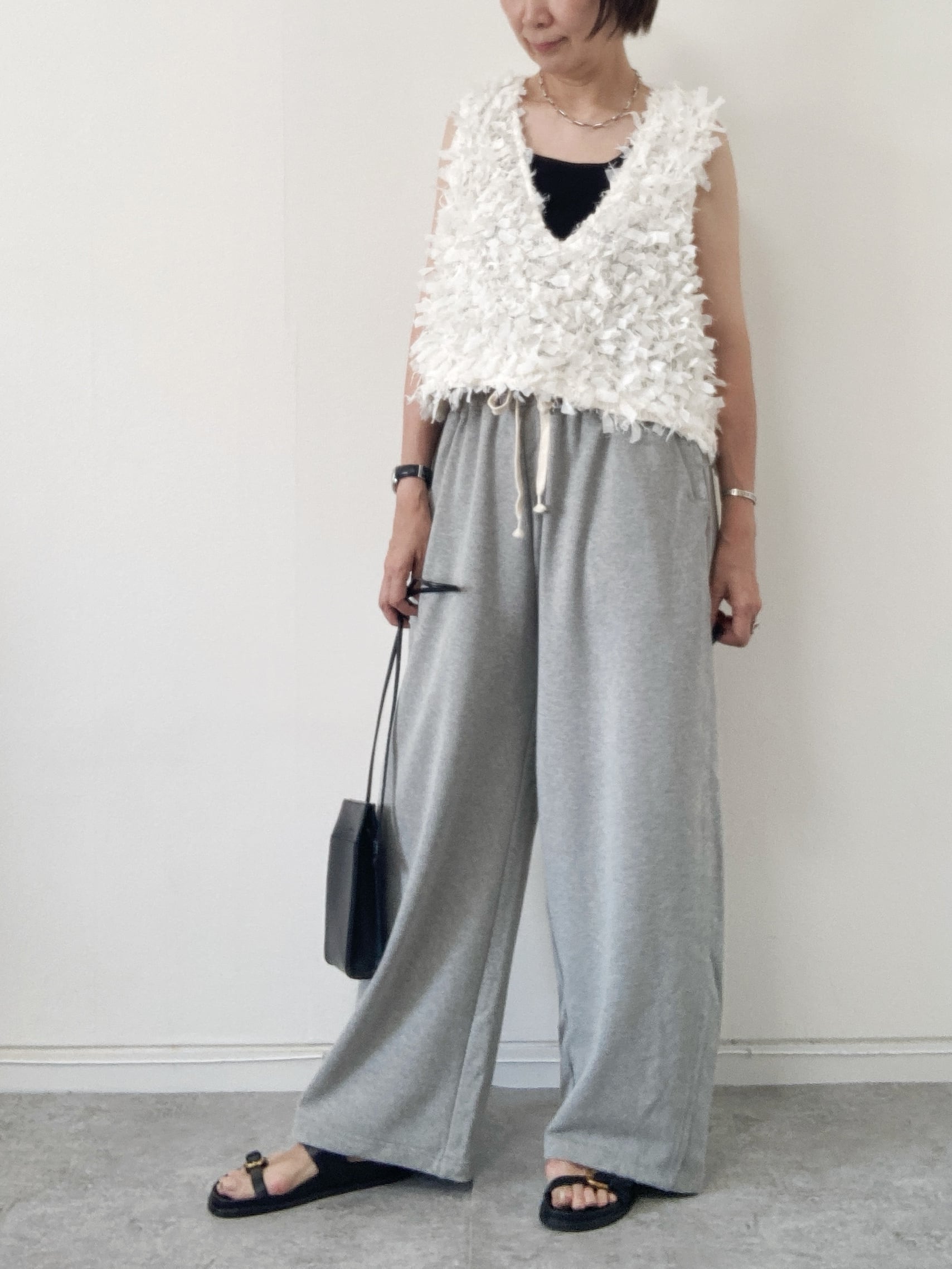 タンクトップやTシャツ、更に秋になれば長袖ブラウスに重ねて着て頂くのも良いです。