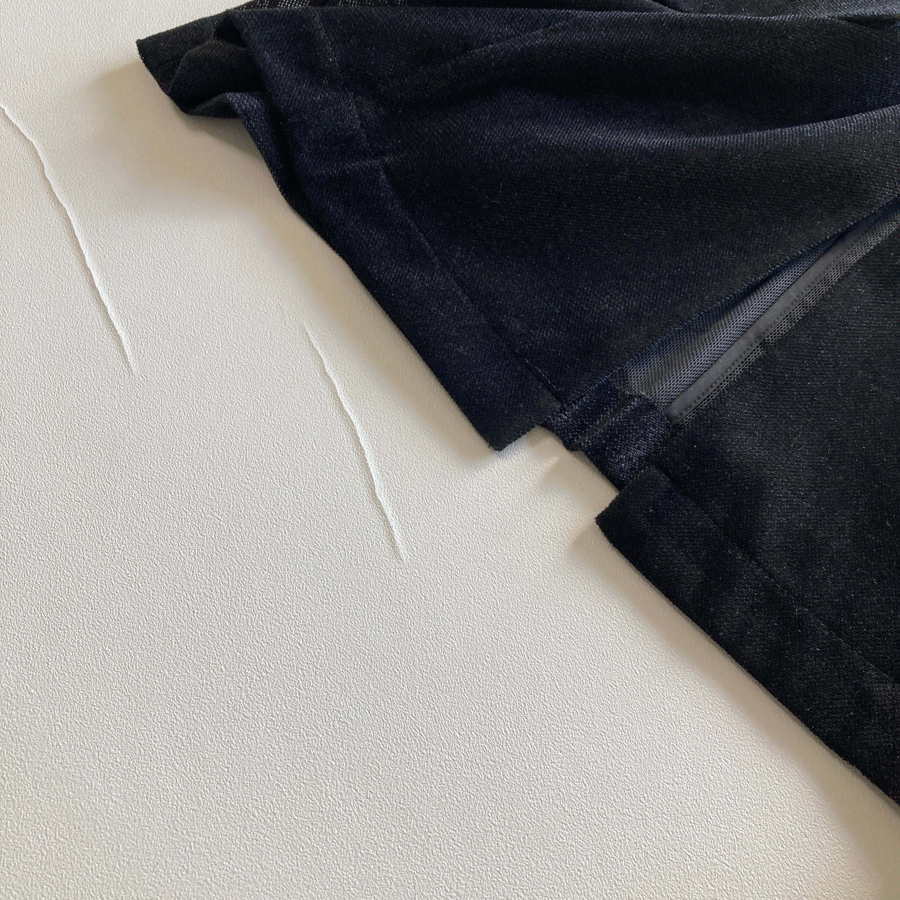 ヒップが隠れるミドル丈はパンツからスカートまで幅広く合わせられて、初秋から冬まで使って頂けるジレです。