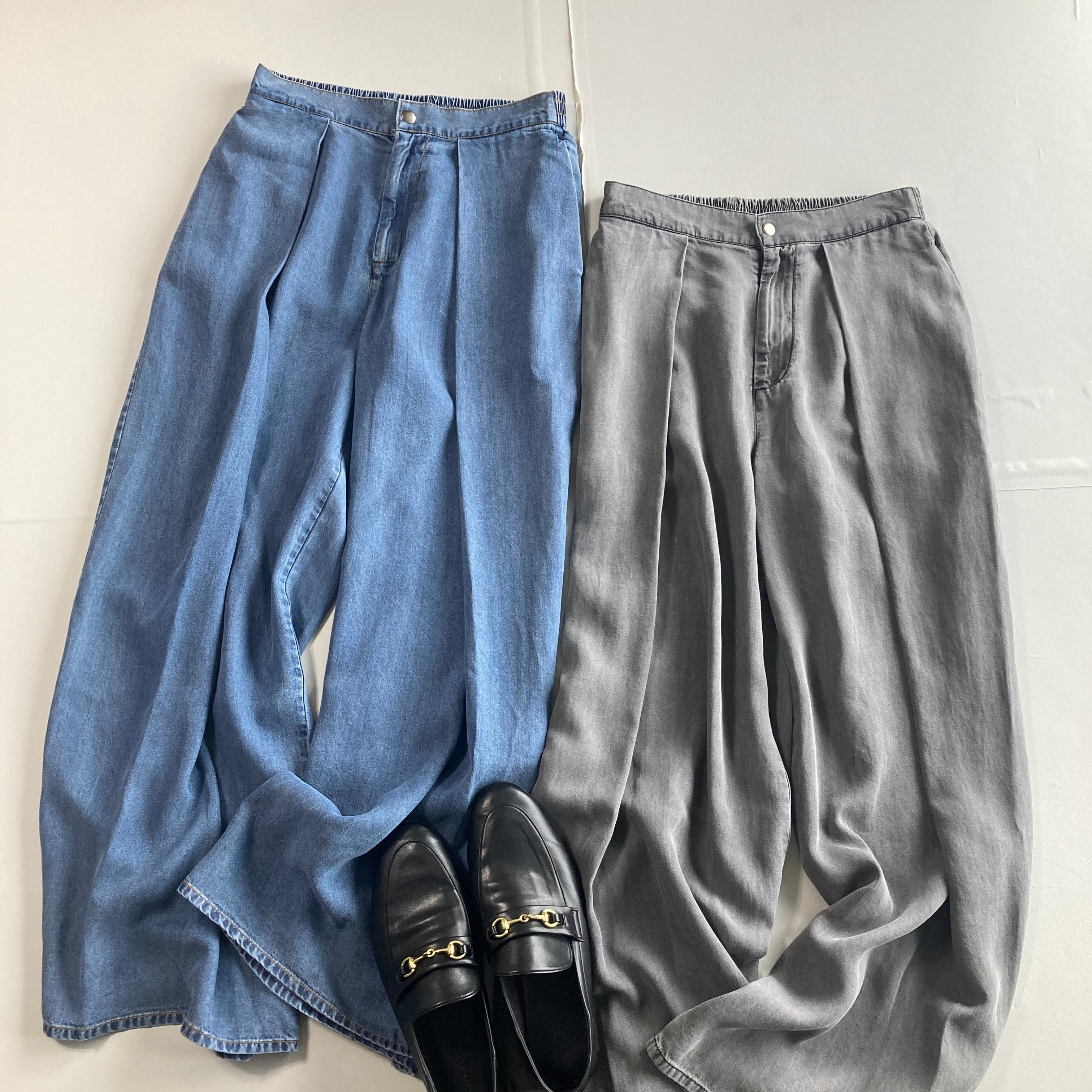 ★テンセル混デニムのタックワイドパンツです。