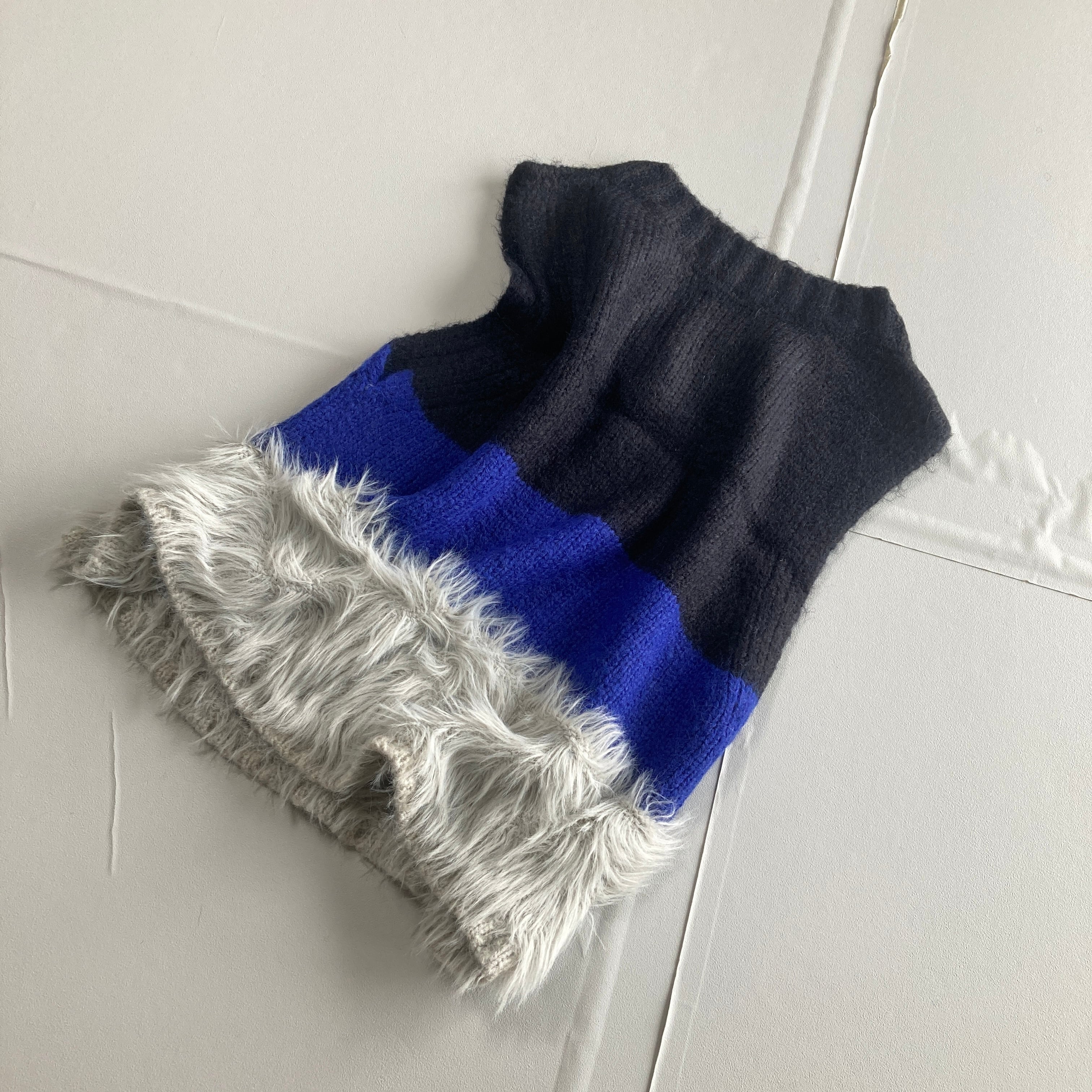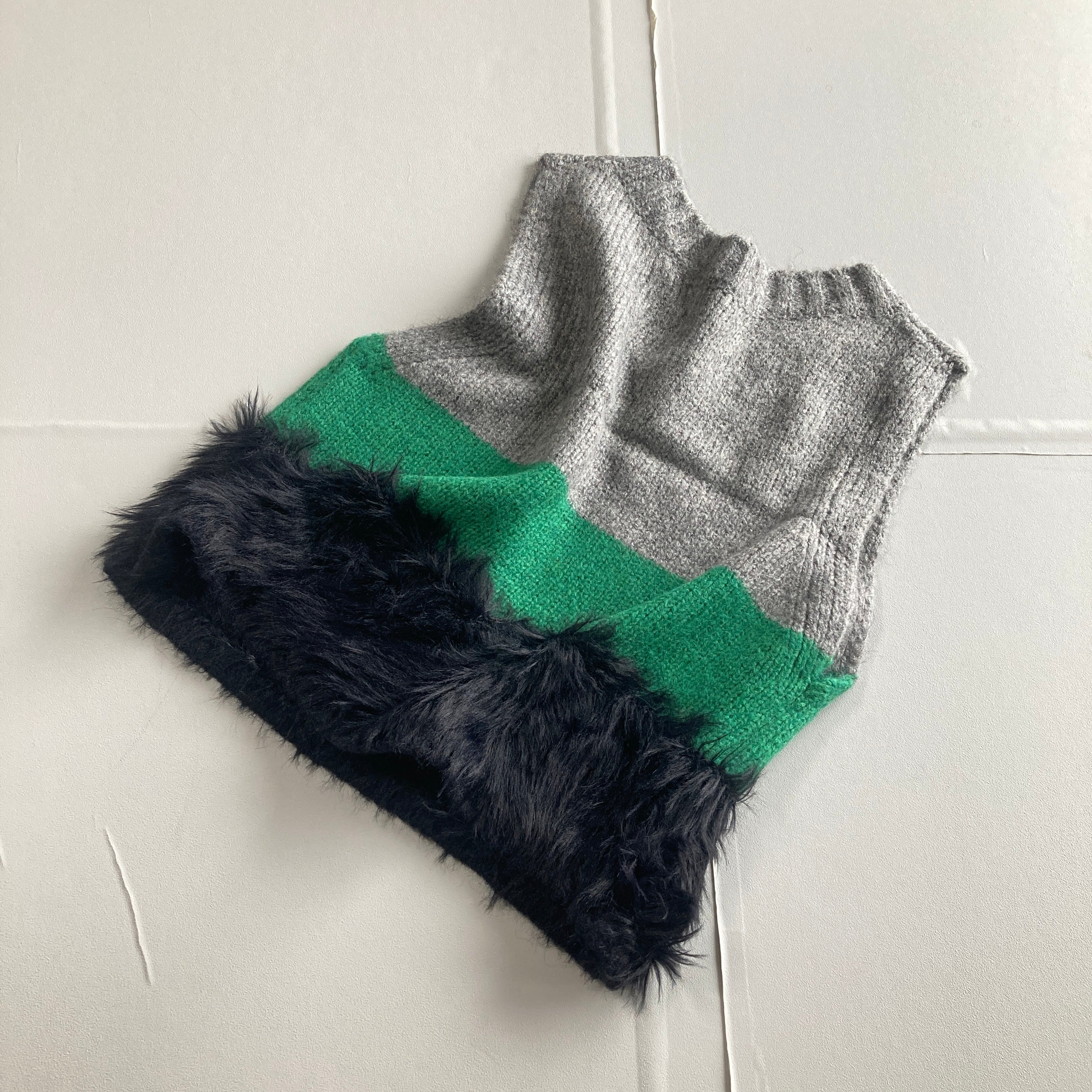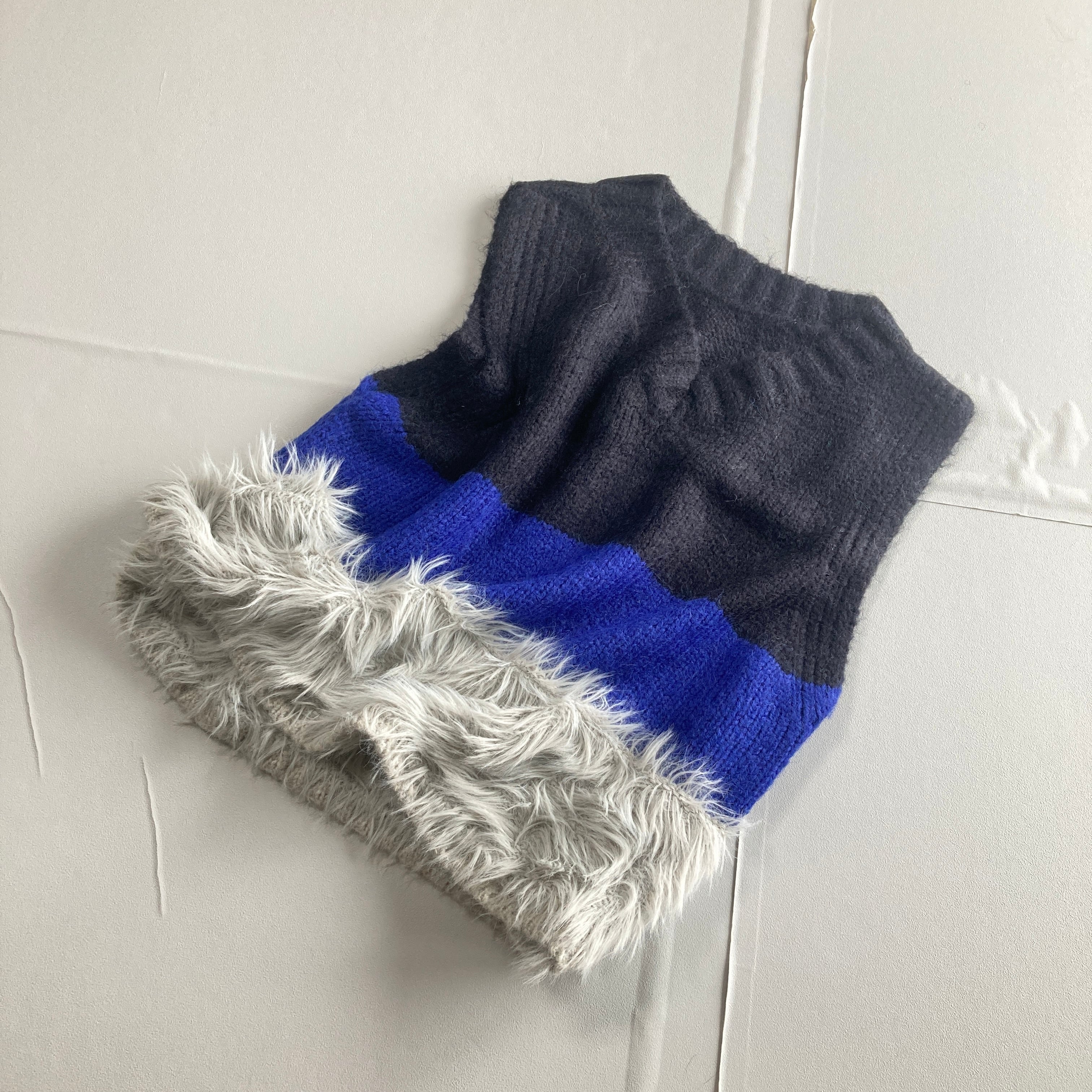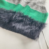 マルチカラーのボーダーの裾にふわふわのエコファーが付いて気持ちよくて可愛いです!