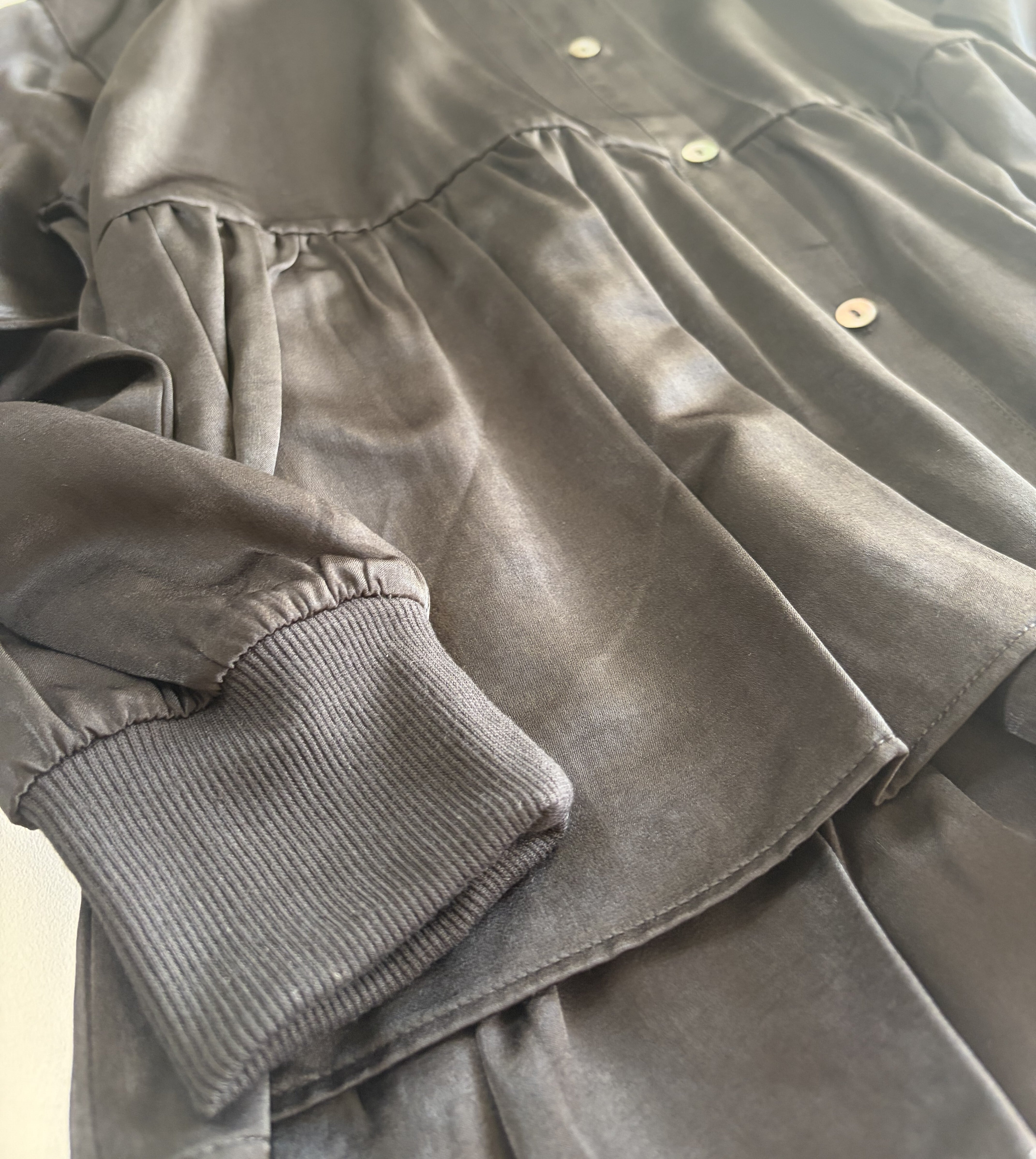 さらにお袖のリブが嬉しい1枚。普段着だけでなくお仕事着でも使い勝手のいい1枚です♪