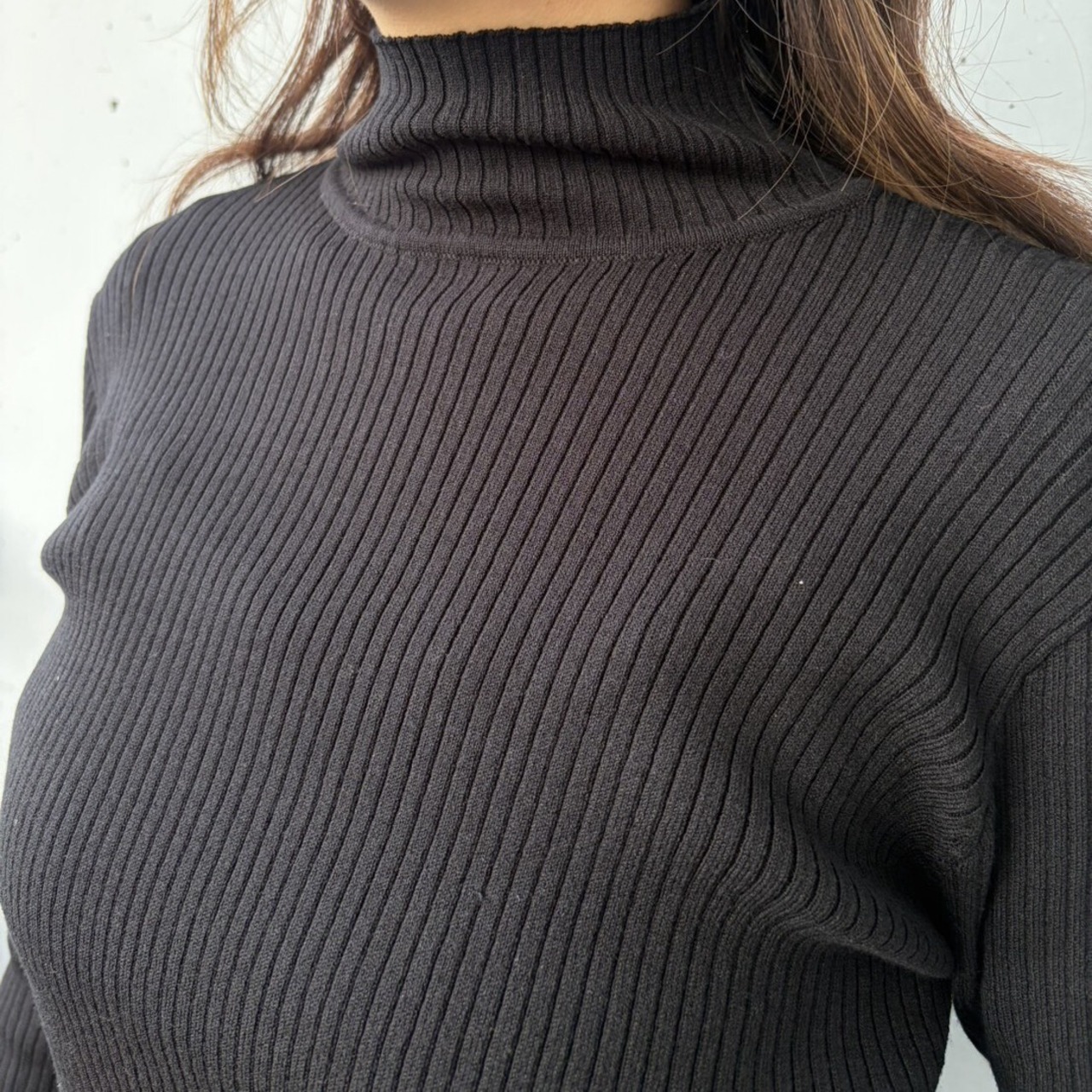 しっかりとしたリブ編みが嬉しい!タートルネックが温かく、様々なボトムスとも合わせやすいので普段使いに最適です♪