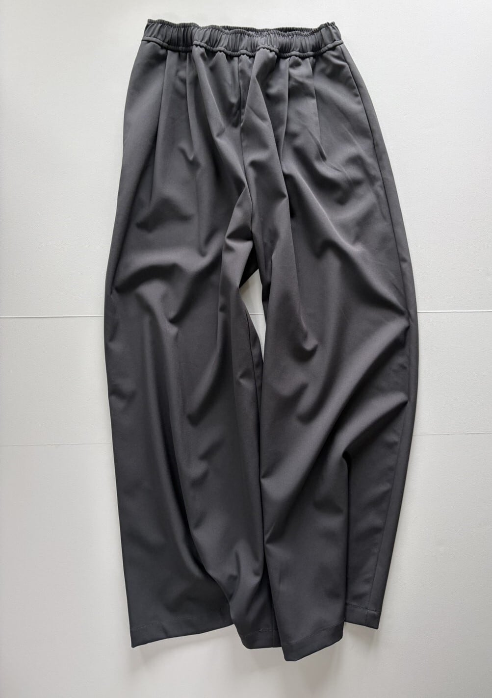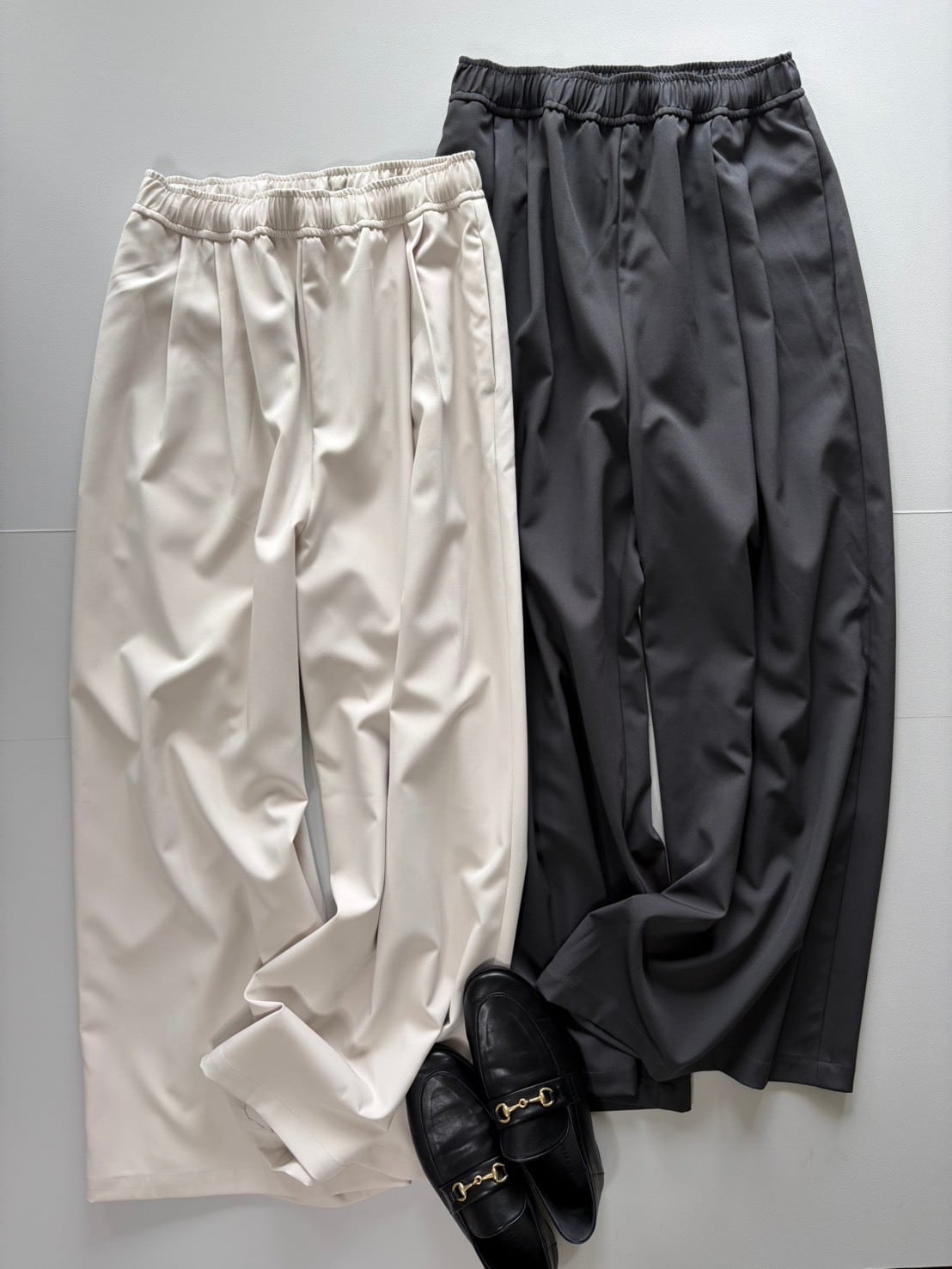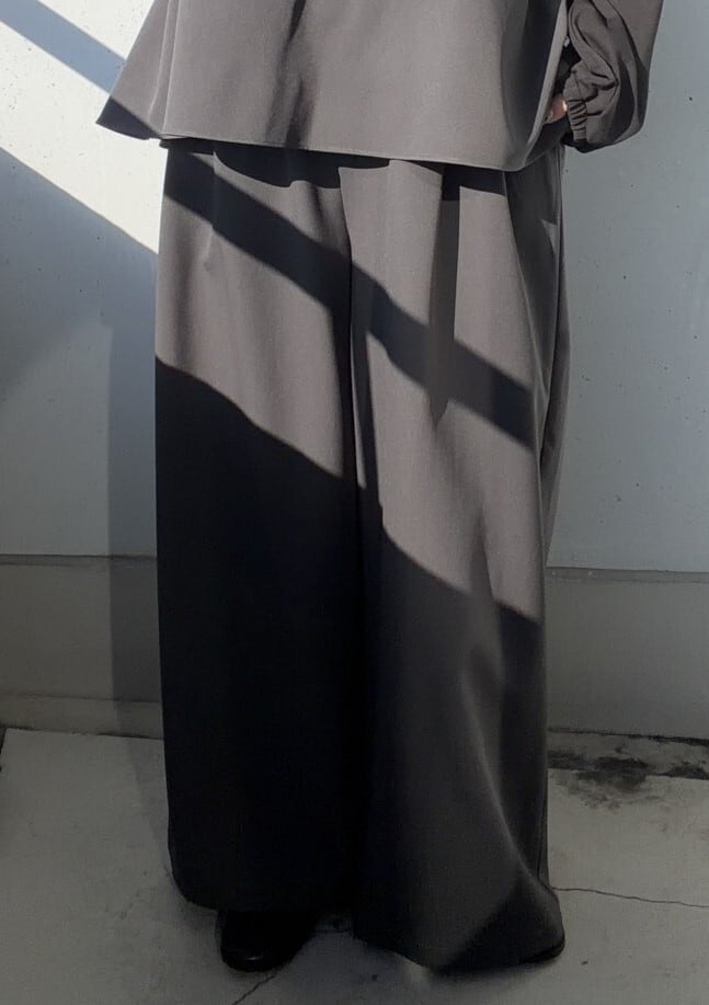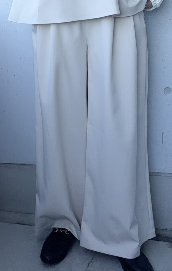 落ち感のある素材と美しいシルエットが魅力の、ダブルタックワイドパンツ。