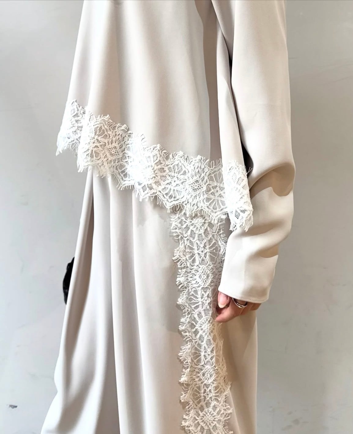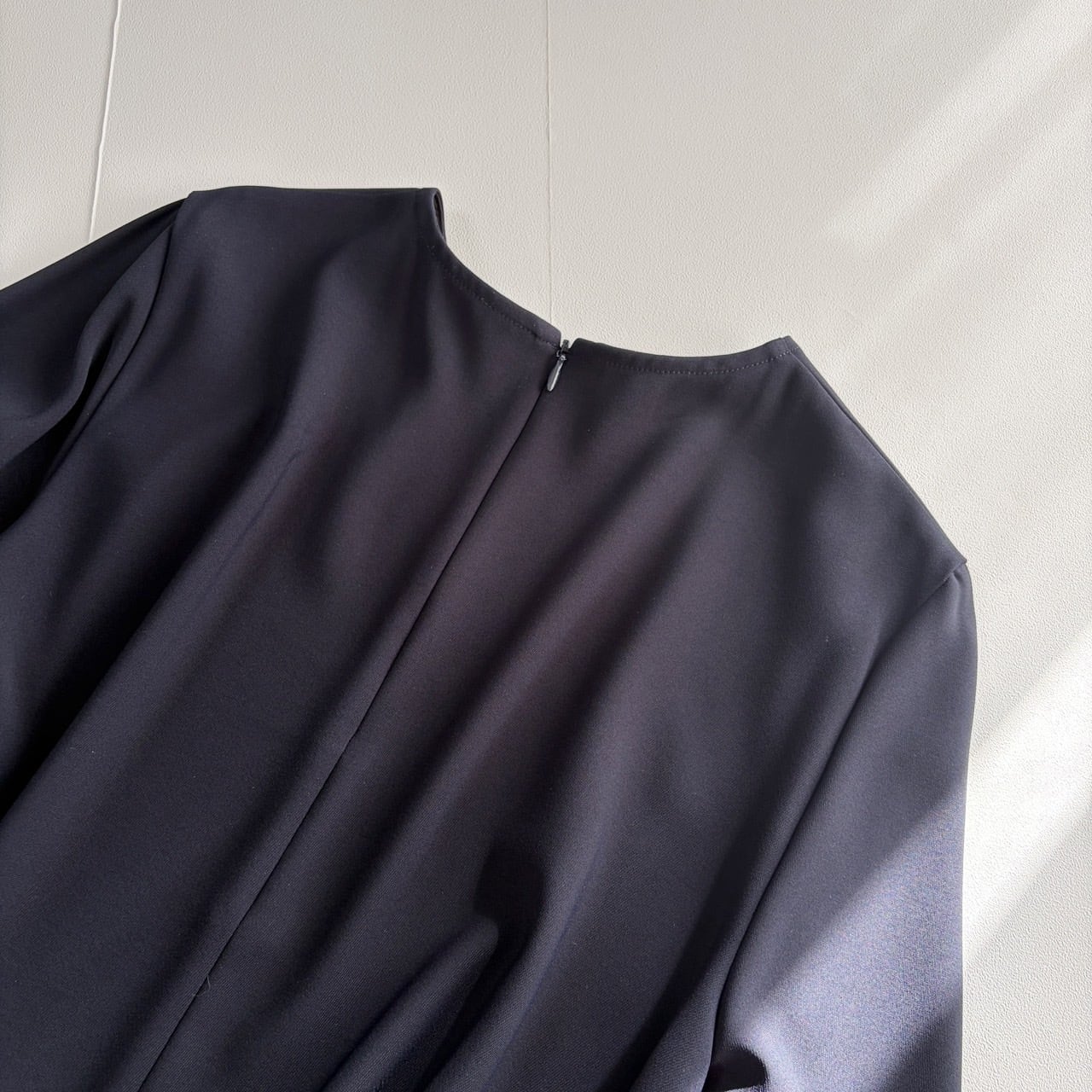 甘さを抑えたデザインで、オフィススタイルにも取り入れやすい一着。