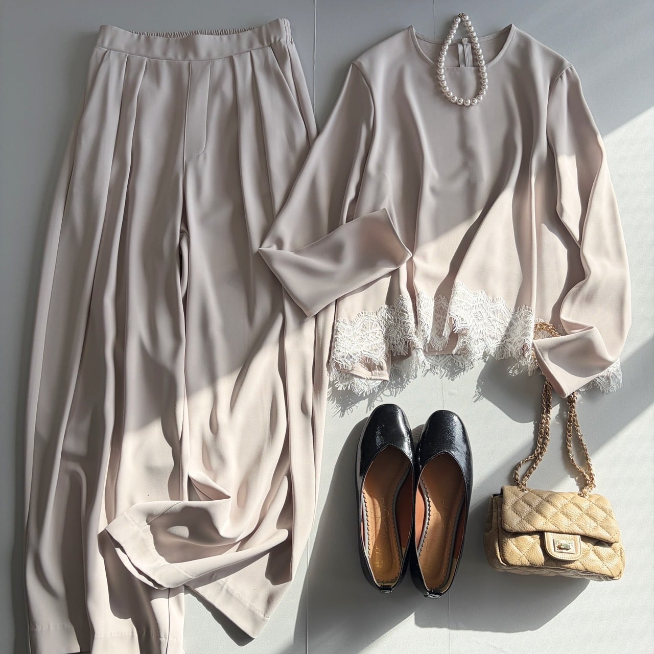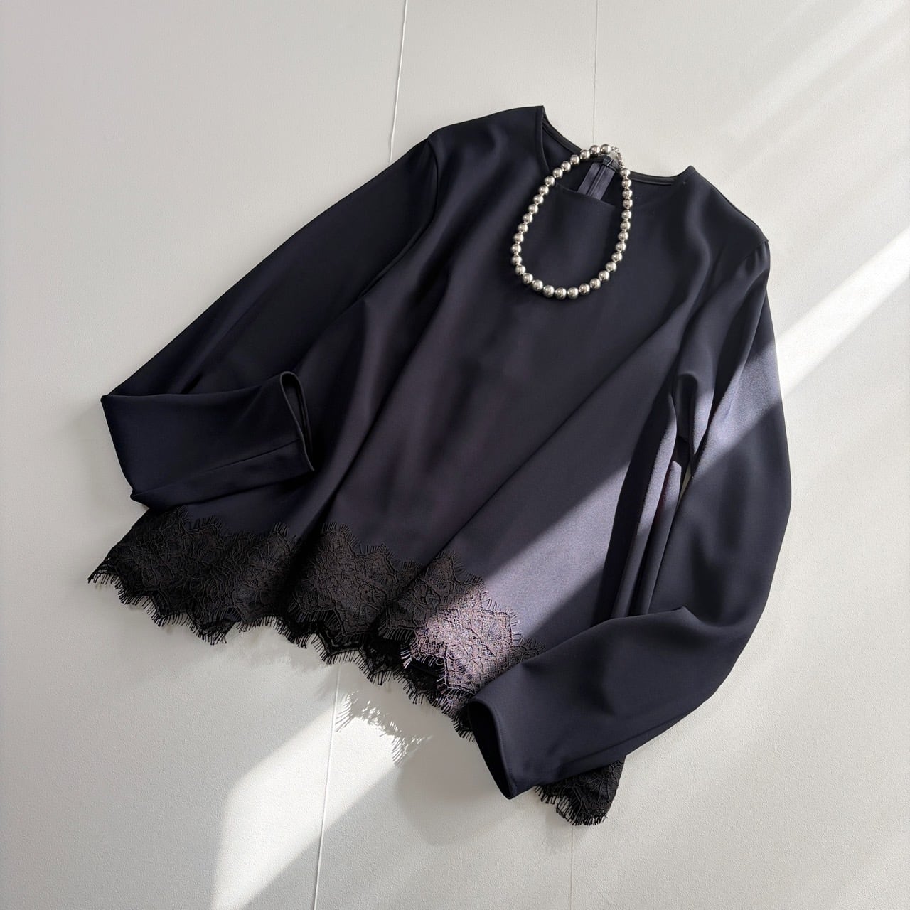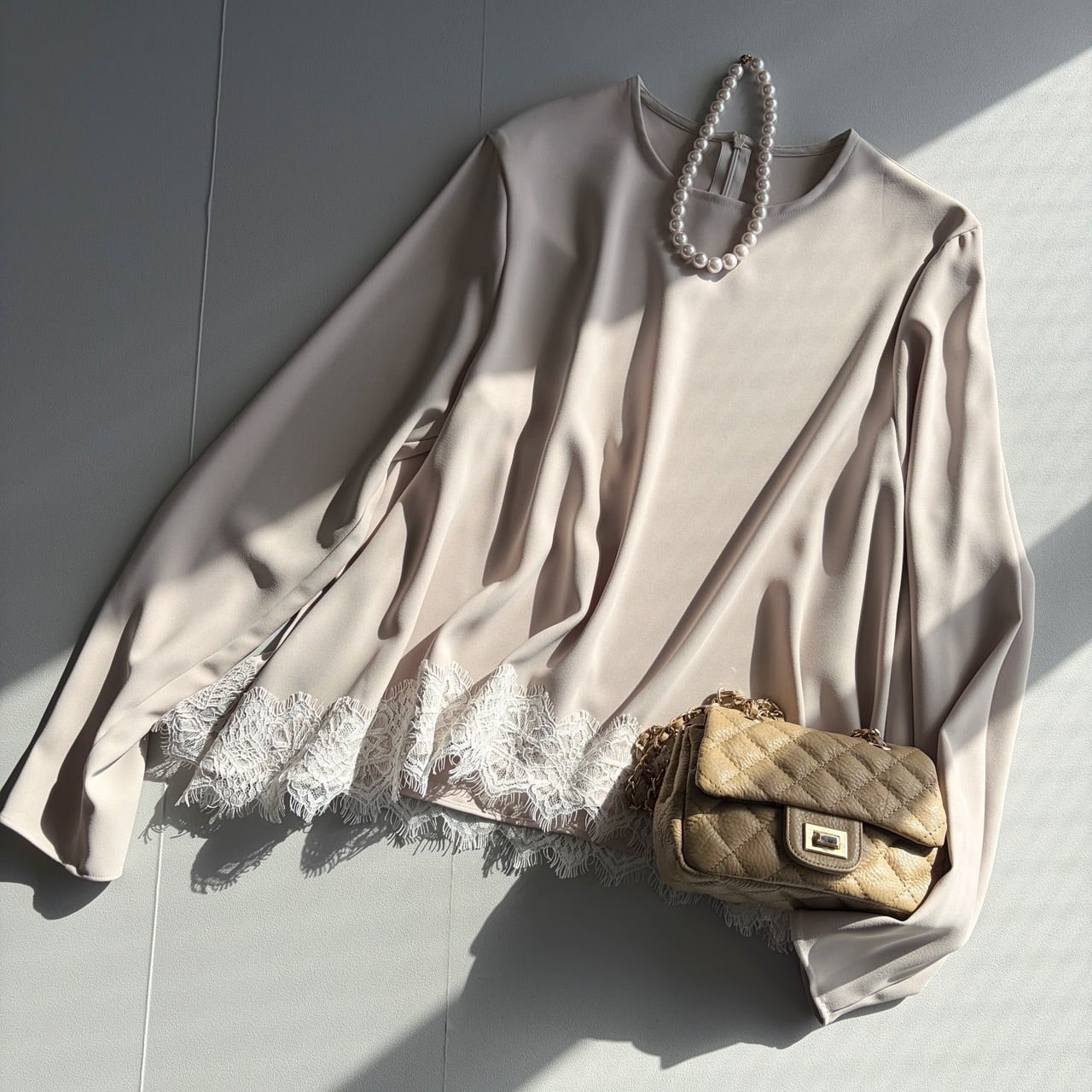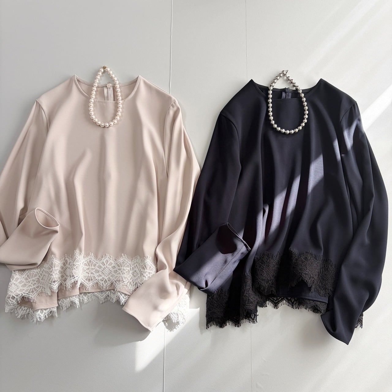 上品なレースディテールが目を惹く、大人のためのフレアーブラウス。