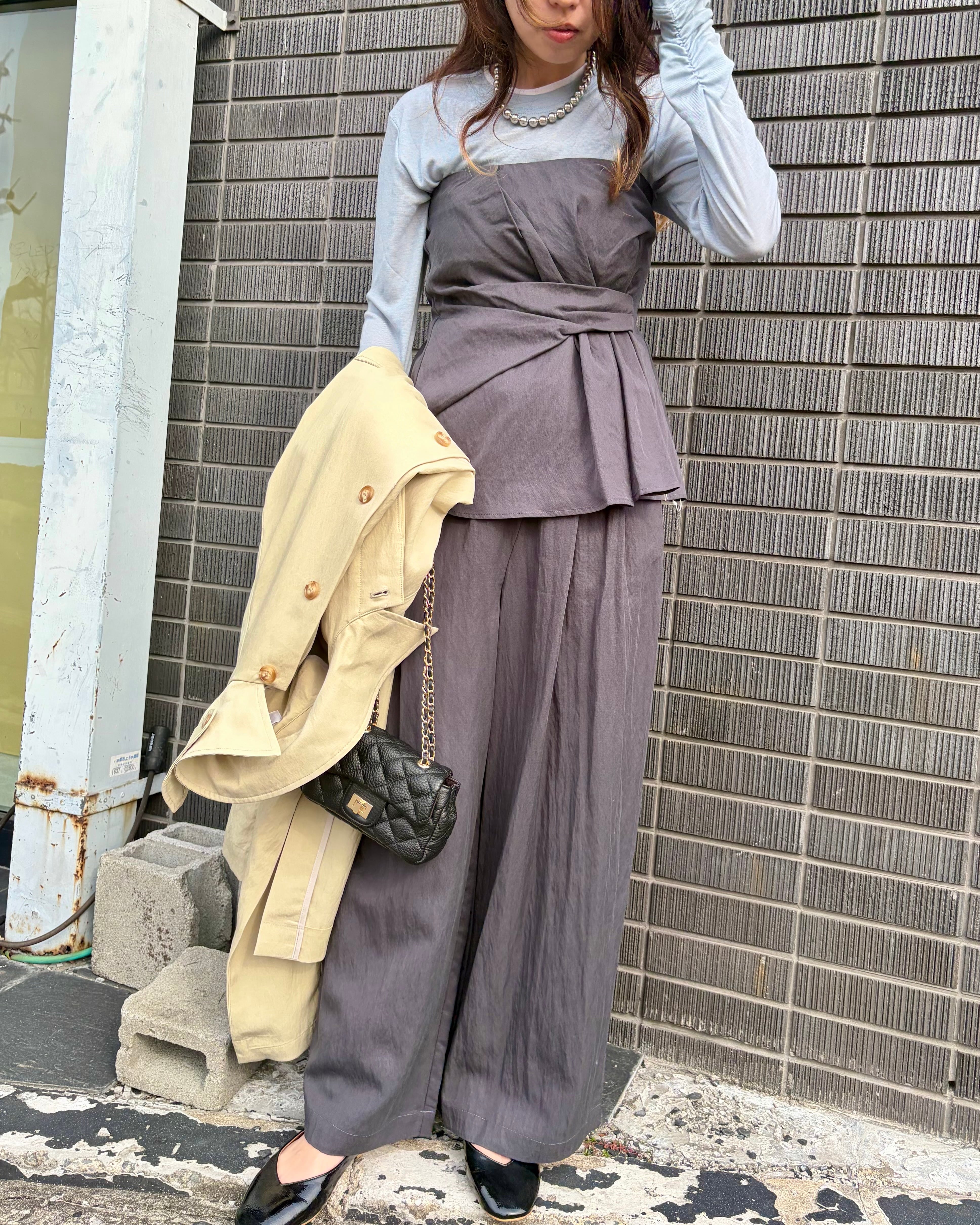 デニムやスカートと合わせればカジュアルダウンしても良し、パンツスタイルでキレイめに仕上げても素敵です!さまざまなコーディネートで活躍するアイテムです。