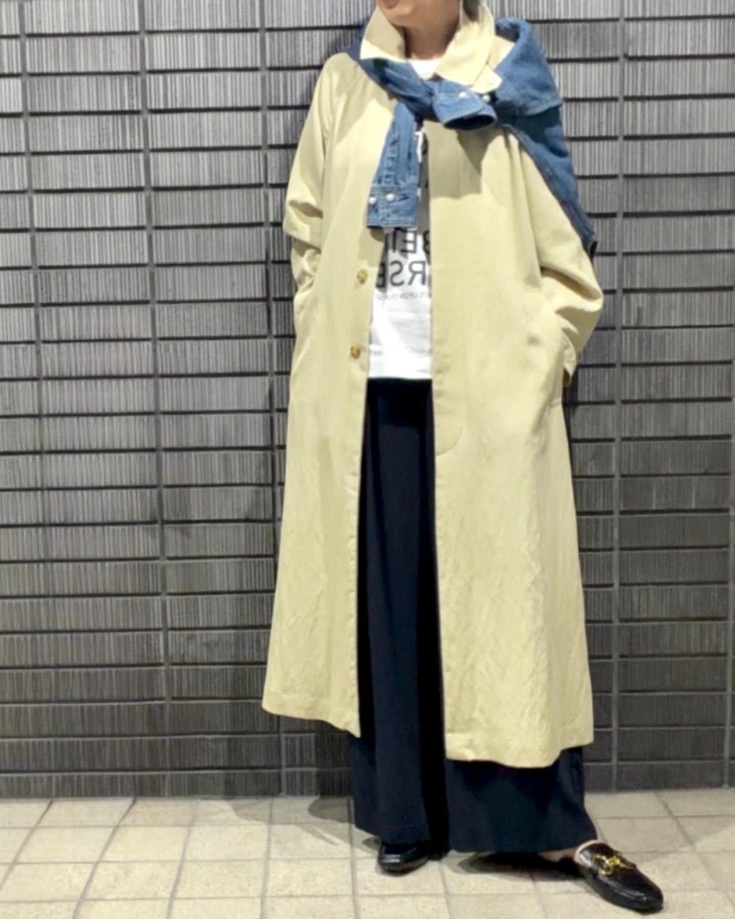 洗練されたシルエットが魅力の、ロングステンカラーコート。