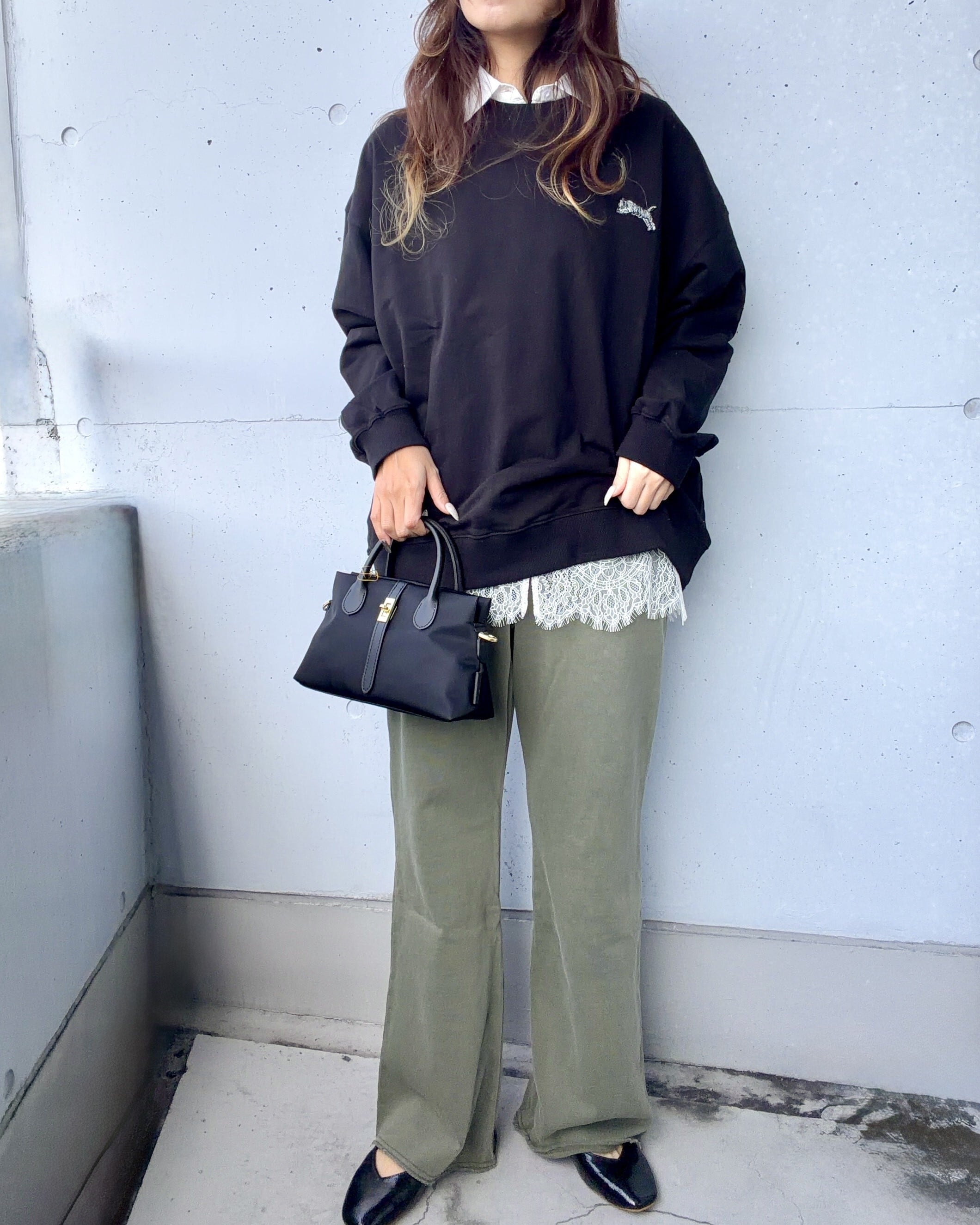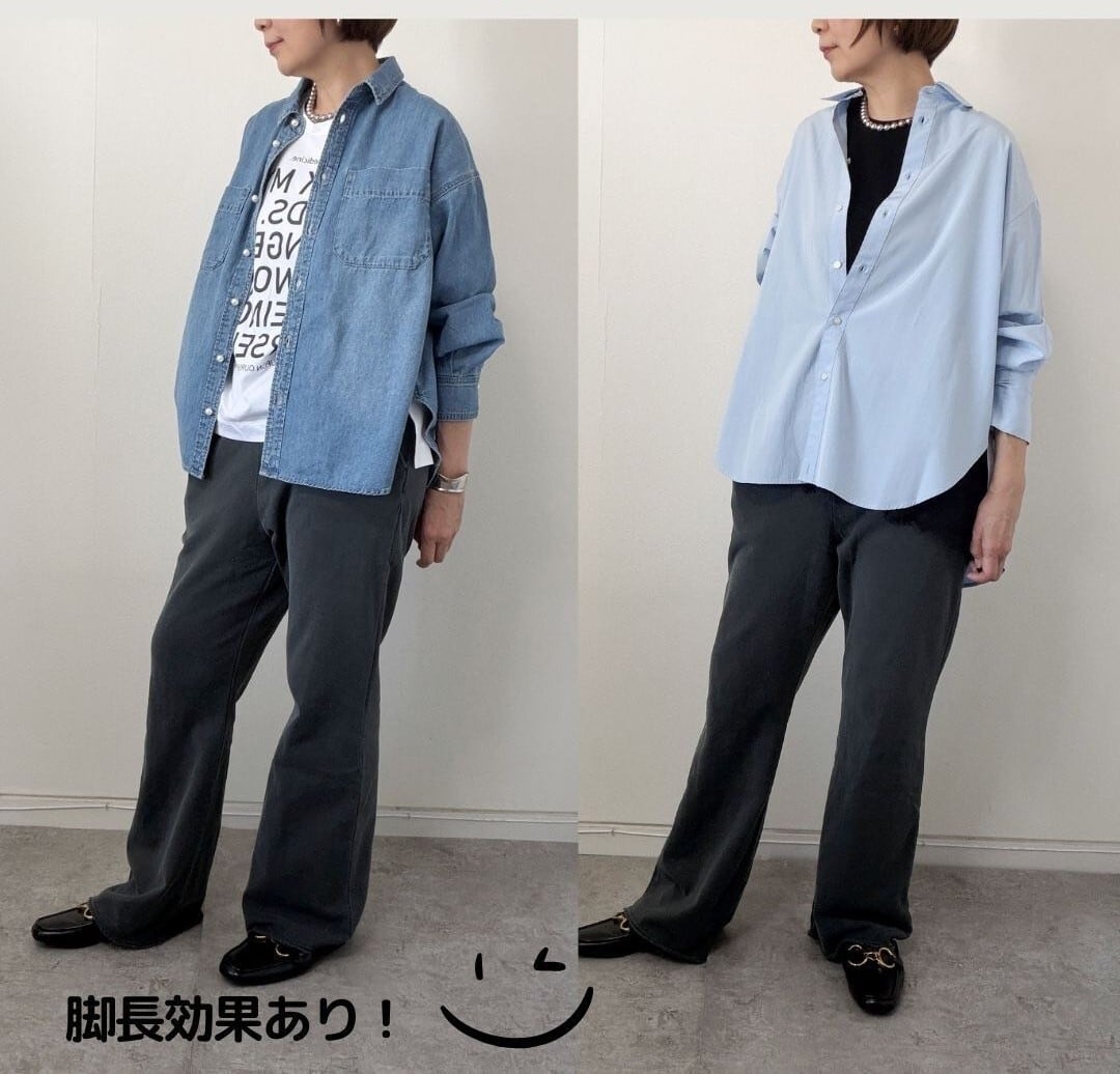 オーバーサイズのシャツやブラウスを合わせれば、