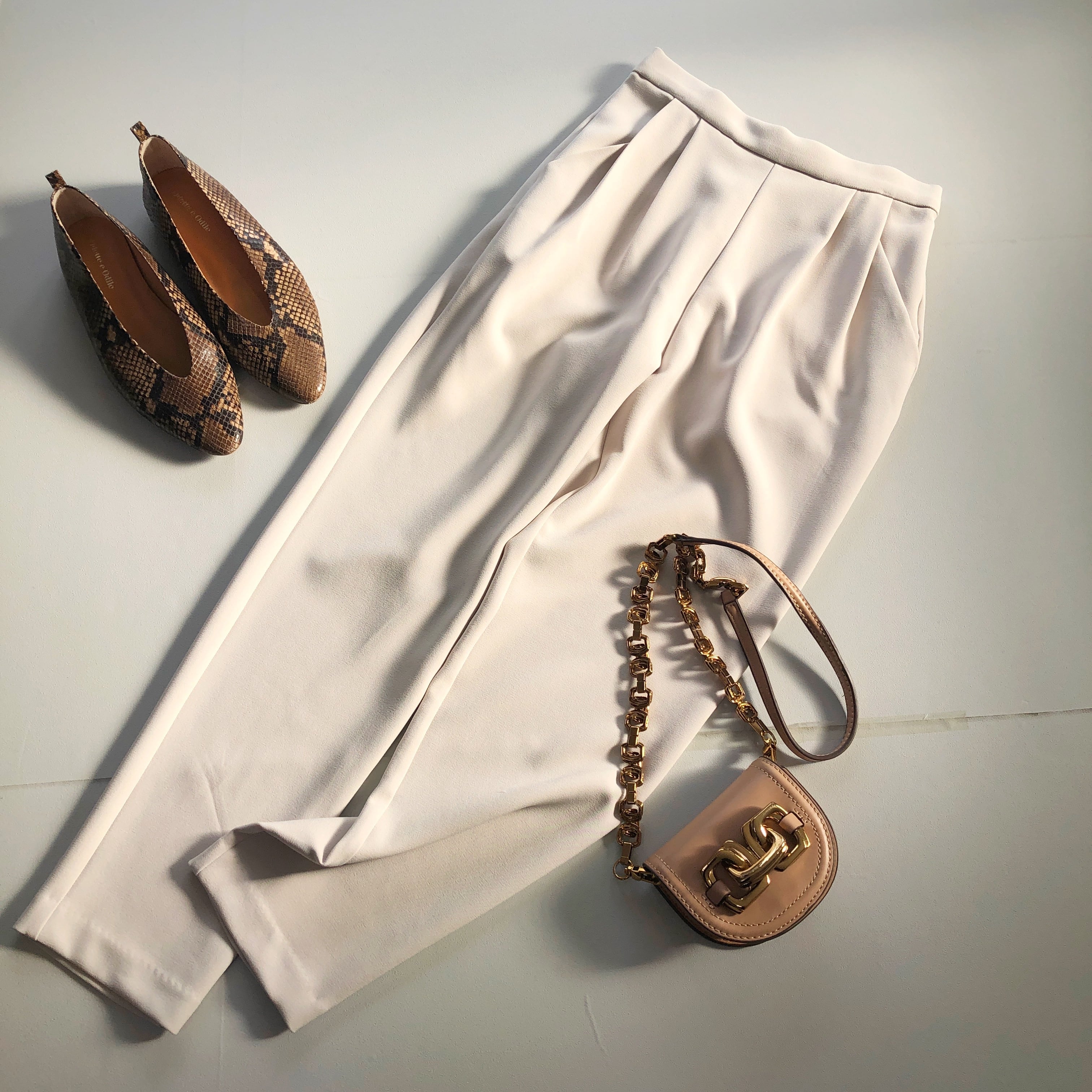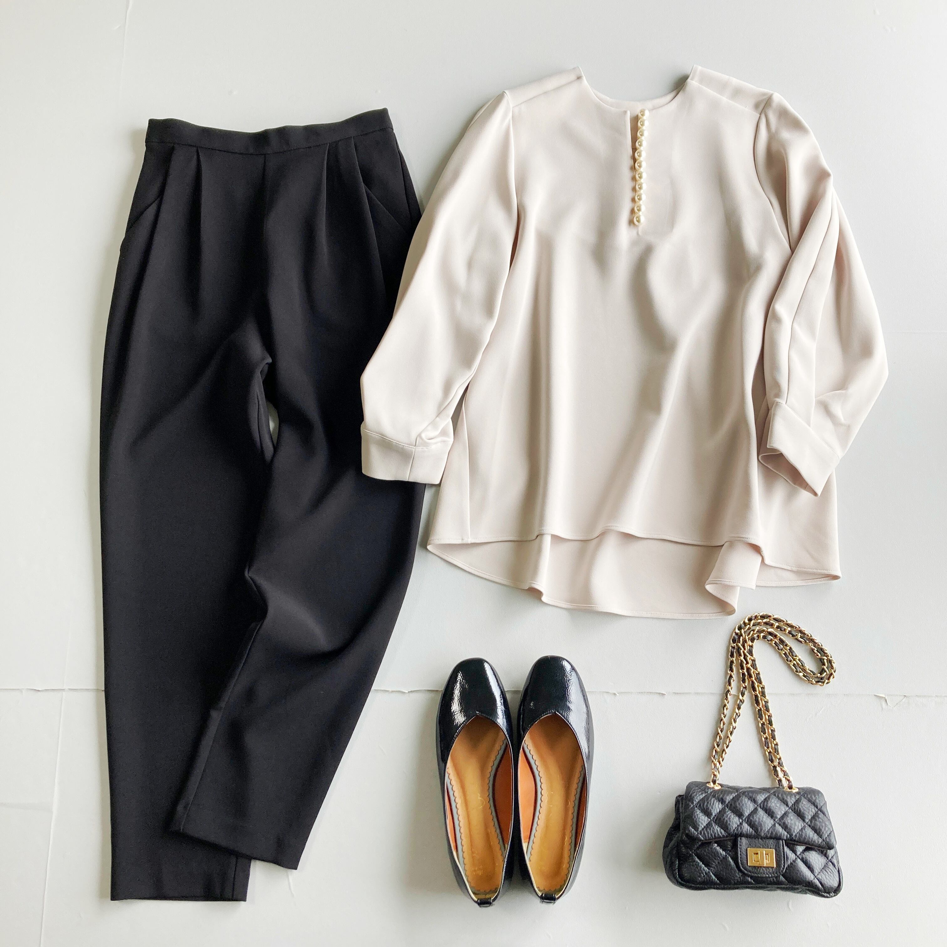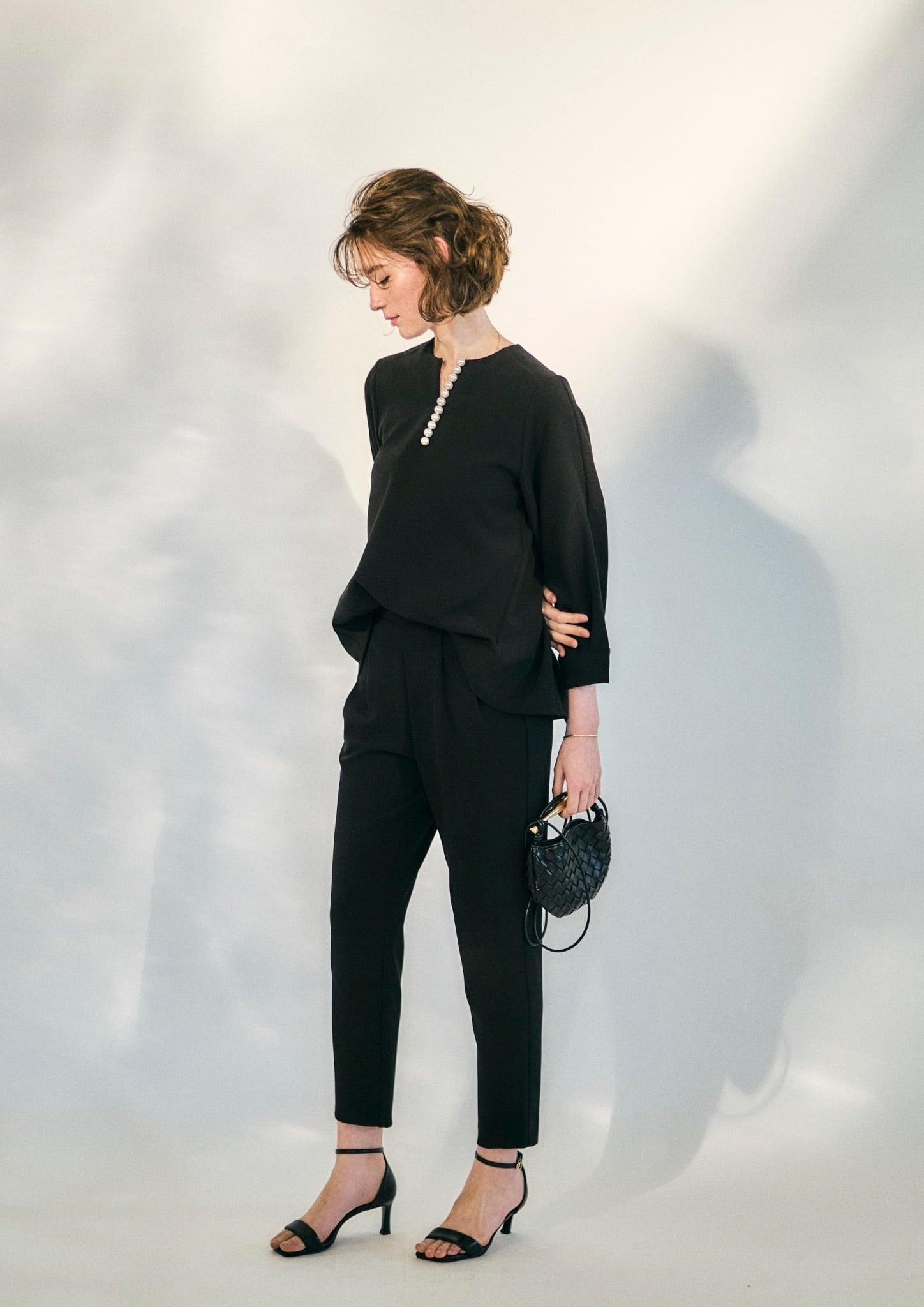 ♫大人気!パール付きキーネックブラウスのお揃いパンツに新色グレーが仲間入りしました。