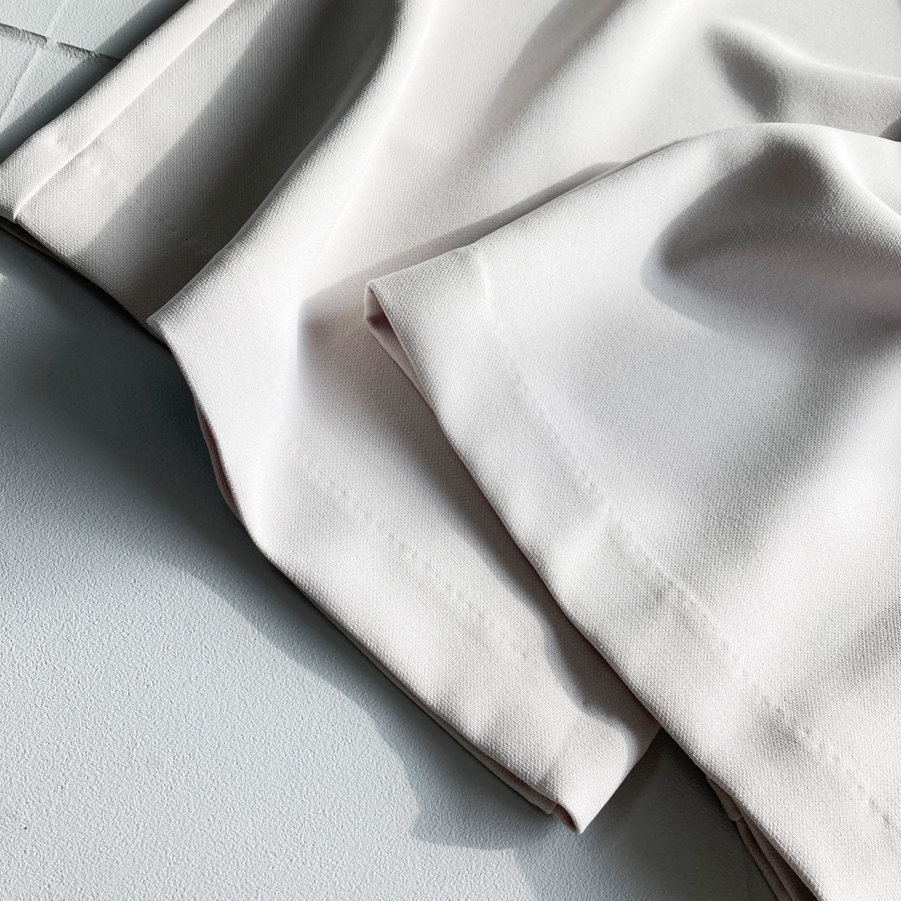 白っぽいパンツは透けが心配になりますが、こちらのマット感のある素材のグレージュなら、裏地が無くても透け感は気になりません。