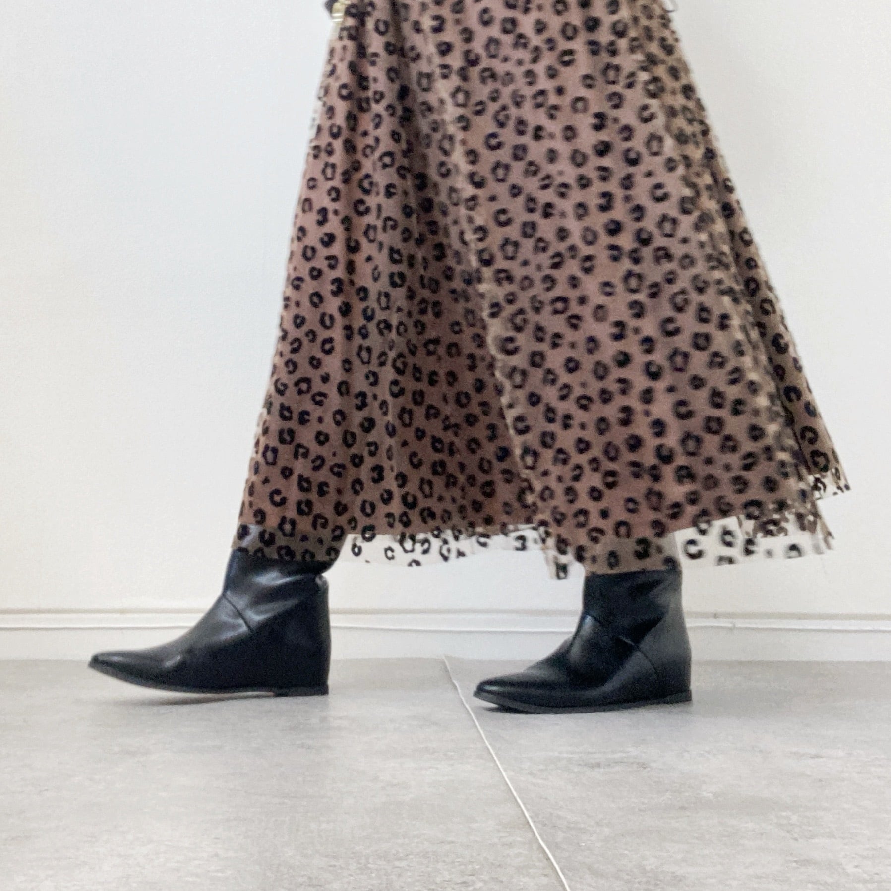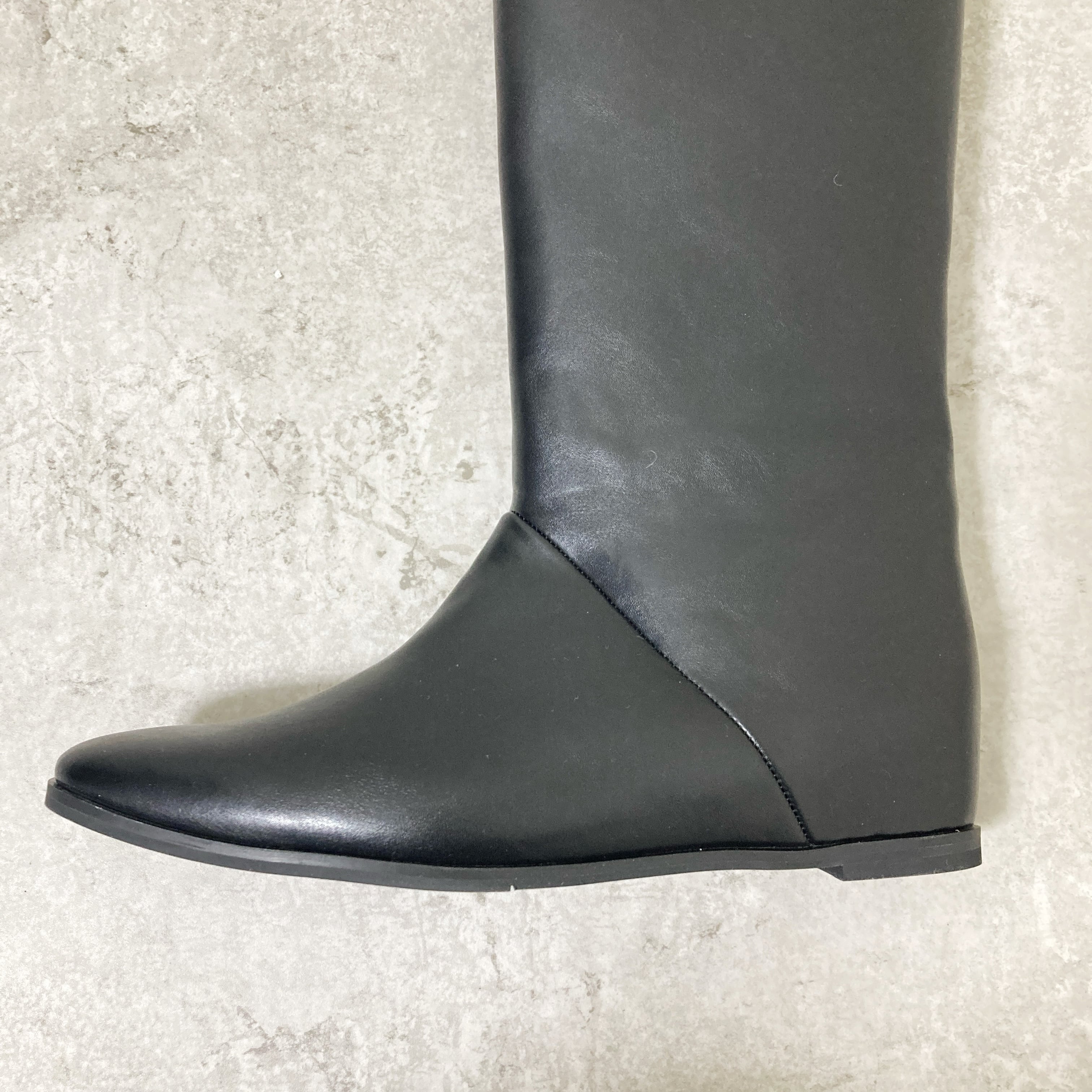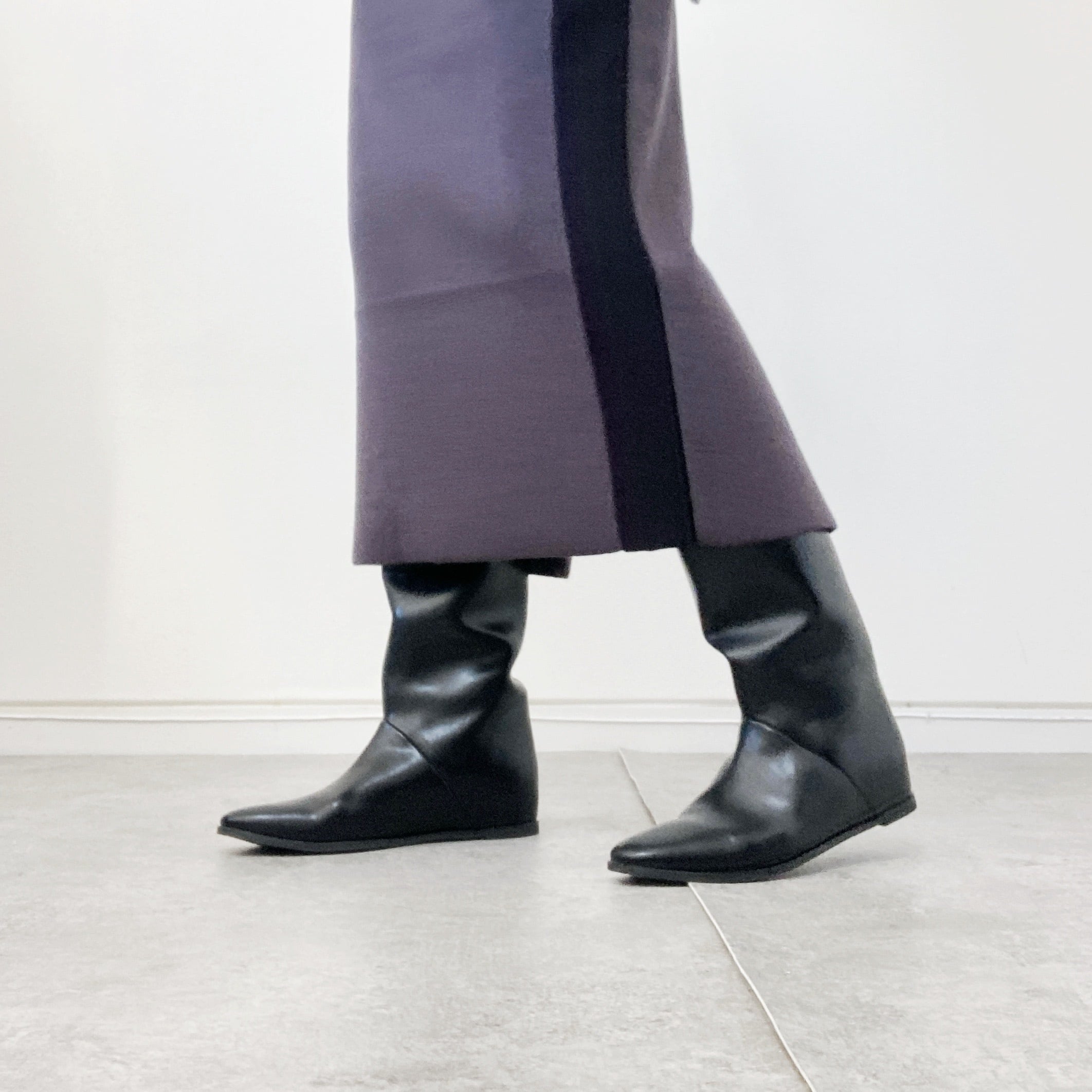 見た目はヒールが無いように見えますが、踵部分に4cmのインヒールが入っているので自然と4cm脚が長くスタイルアップして見えるのが最大のポイントです!